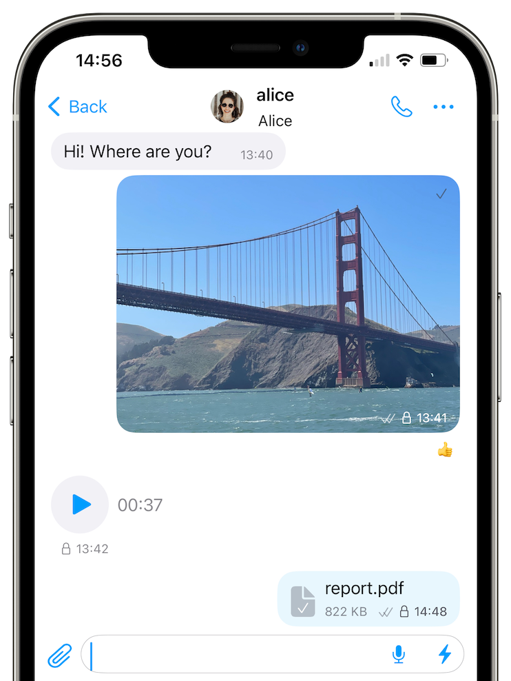 - encrypted local files and media with forward secrecy.