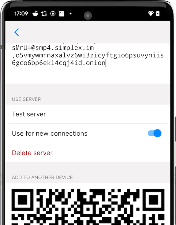 It is also possible to share the address of your server with your friends by letting them scan QR code from server settings - it will include server password, so they will be able to receive messages via your server as well.